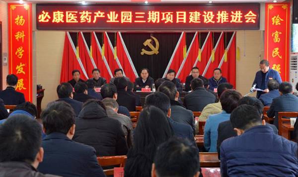 检查结束后,在十里镇政府召开了必康医药产业园三期项目建设推进会议,相关部门单位、街办主要负责同志和项目管理处全体人员参加了会议。会议由县纪委书记刘申海主持,会上县经贸局汇报了项目建设进展情况,副县长陈开锋宣布了项目建设管理处人员调整的通知文件,县长袁良善对进一步做好必康三期项目建设进行了安排部署,住建、农业、国土、十里街办等8个部门、街办作了表态发言。随后县委书记张国瑜作了重要讲话。